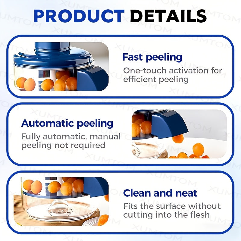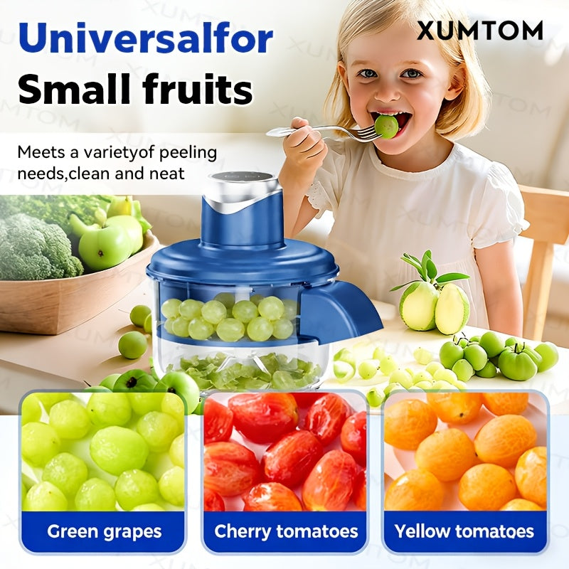 Descascador Elétrico de Frutas de 5 Lâminas | Descascador Automático Recarregável USB para Uvas, Alho, Tomates-Cereja | Gadget de Cozinha Eficiente, Uso Doméstico, Fácil de Limpar, Azul - Ótimo Presente para o Dia dos Namorados e Dia da Mãe
