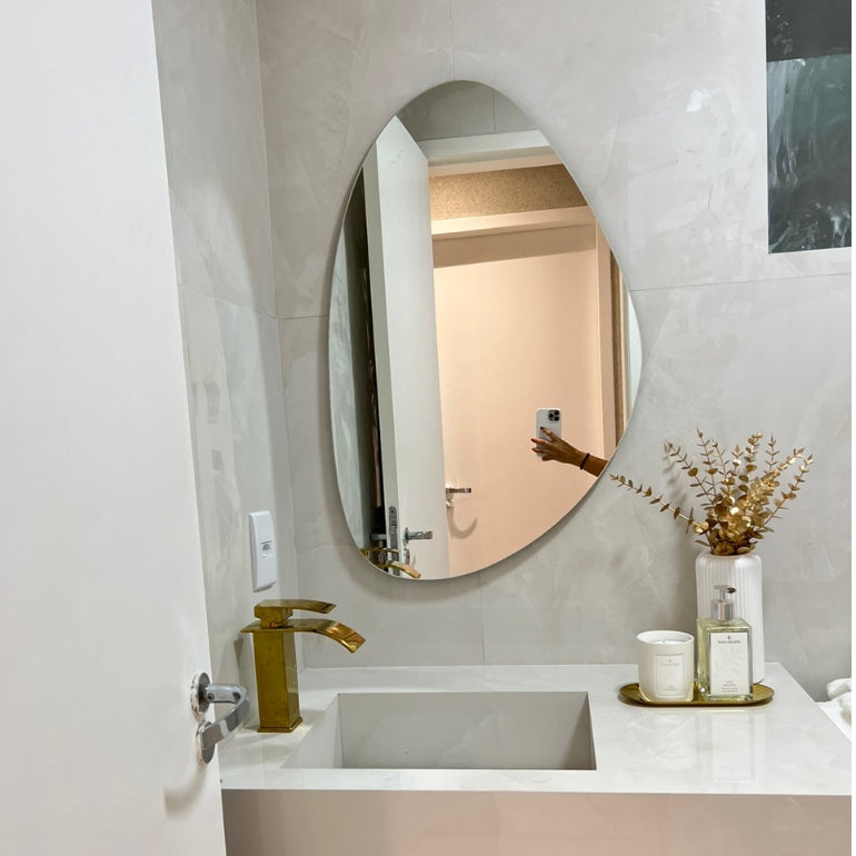 Nosso Espelho Orgânico oferece um acabamento refinado e lapidado, com detalhes que encantam: