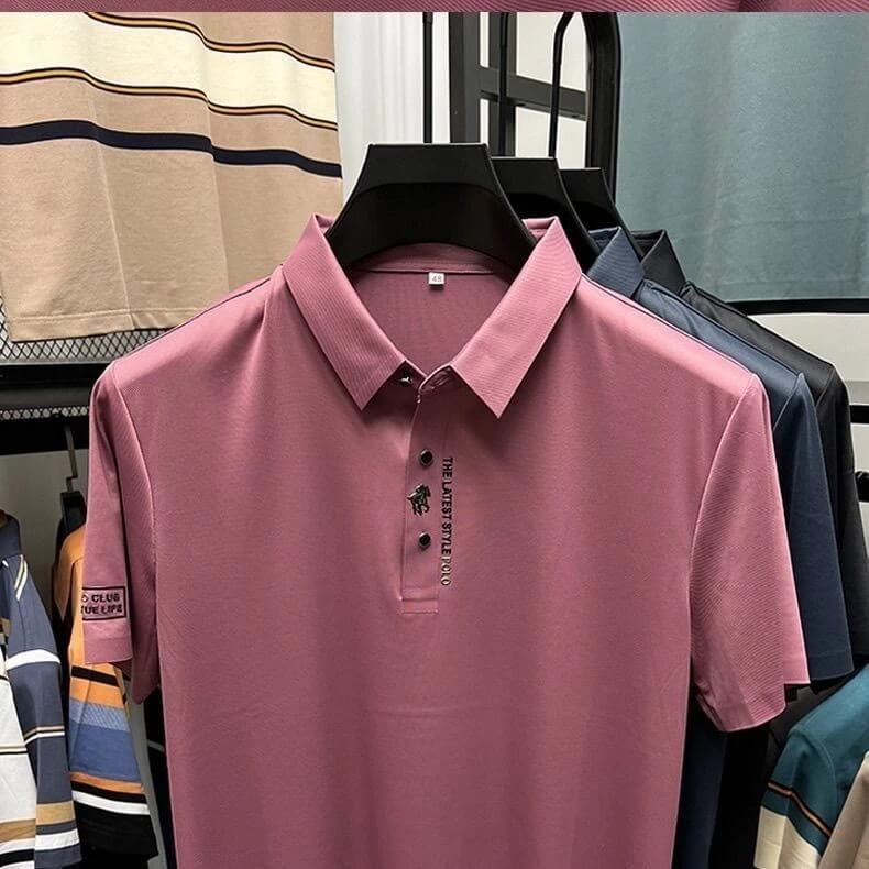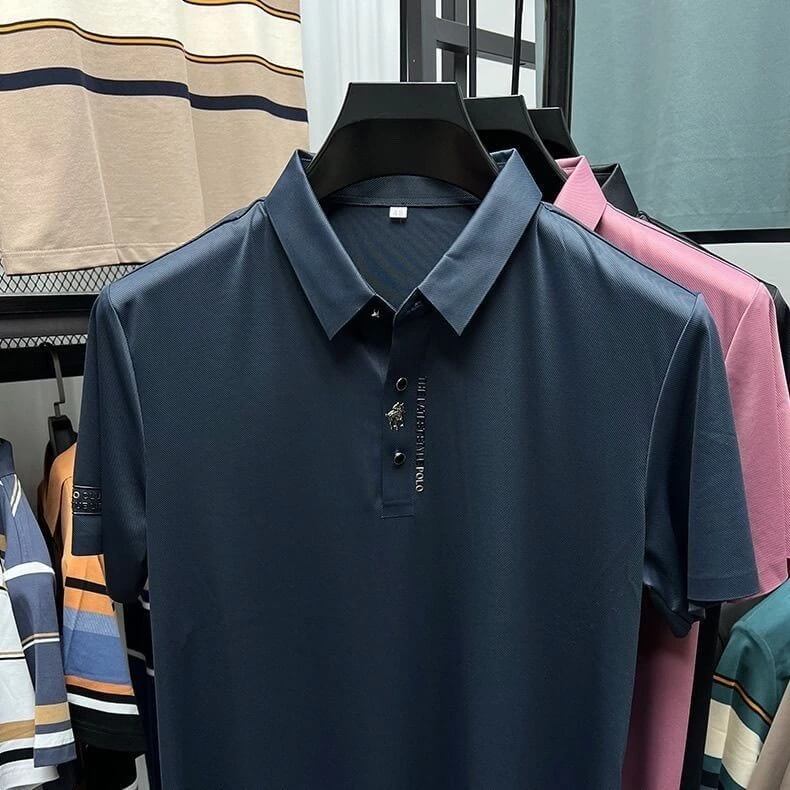 Você merece mais do que uma camiseta comum. Apresentamos a nossa Camisa Polo Masculina em Tecido Premium de Seda Gelada, a solução para quem busca estilo sofisticado e conforto sem esforço.